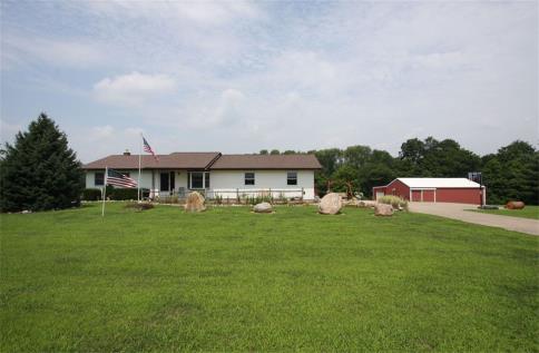 Wonderful country setting with 5 acres of picturesque land and a very nice ranch home that includes 3-4 bedrooms, 2 full baths, a large living room with bay windows, nice dining area and gorgeous cabinet filled kitchen with breakfast bar / island and includes all major kitchen appliances, walkout lower level with family room, wood stove and second kitchen, conveniently attached 2 car garage with concrete drive, there is also a very nice pole barn / garage / workshop, high efficiency propane furnace and electric heat pump, low maintenance vinyl sided exterior, huge rear deck with gorgeous country views, this home is priced to sell at $170,000.