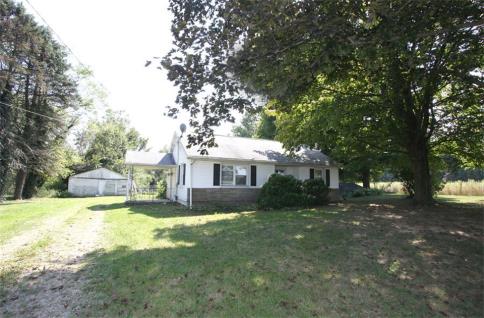 Cute country ranch that is surprisingly larger than it looks from driving by this home, the home is situated on 2.498 acres and features 2 bedrooms, a huge living room with hardwood flooring, spacious dining room that opens into the darling country kitchen, convenient main level laundry, enclosed porch plus a covered size patio / porch, detached 20 x 24 garage / barn plus an old barn, natural gas forced air heating, low maintenance vinyl and stone sided exterior, immediate possession available, priced to SELL super fast at $64,900.
