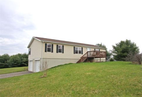 Nice country ranch situated on 1.191 acres, spacious floor plan featuring 3 bedrooms and 2 full baths, large living room with lots of natural light, adjoining cabinet filled kitchen with major appliances, dining area with glass sliders that lead to the relaxing rear deck, master bedroom suite with its own private bath, convenient main level laundry, lots of storage space in the basement, attached 2 car garage with paved driveway, natural gas forced air heating and central air conditioning, great country home for only $110,000.