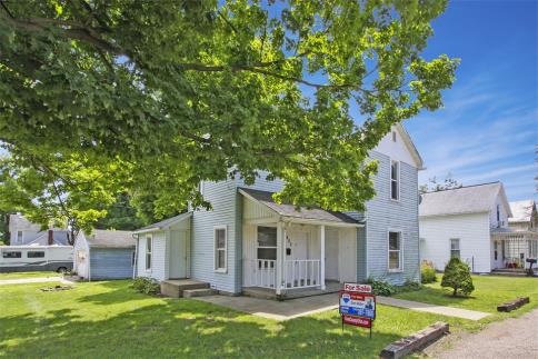 2 Story home situated on a level and easy care corner lot, across the street from Pleasant Street Elementary School, features include 3 bedrooms and 1 full bath, large and open living room, spacious eat in kitchen with main level laundry hook up, first floor owners bedroom, natural gas heat and central air, detached 2 car garage with concrete drive, priced to sell at $69,900.