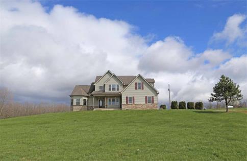 Beautiful and spacious custom built home situated on 15.187 country acres, situated back a private driveway, picturesque and quiet setting, features include 4 bedrooms and 3.5 baths, two story living room with logs of natural light and wood burning fireplace, adjoining formal dining room, gorgeous white cabinet filled kitchen with breakfast nook, major appliances and solid surface countertops, convenient main level laundry, first floor primary suite with walk in closet and private bath, second floor loft space, relaxing rear deck, full basement with ample storage space, attached 2 car garage plus a detached 30 x 48 pole barn, impressive property that is a must see. $850,000.
