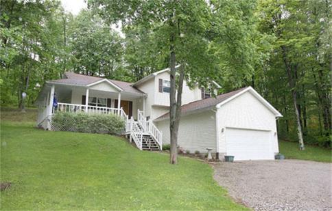 Super spacious split level featuring 4 bedrooms and 2 ½ baths, an inviting covered wrap around front porch, inside you will find a vaulted ceiling living room with an adjoining dining area, pretty oak cabinet filled kitchen that includes the major appliances, 2nd floor laundry conveniently located near the bedrooms, huge lower level family room highlighted by a fireplace plus there is a 4th bedroom and half bath downstairs, 2 car garage, relaxing rear deck and a hillside backyard, natural gas forced air heating and central air, easy care vinyl siding, this home is larger than it looks and it is priced right at just $135,000.