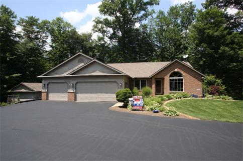 Stunning Apple Valley ranch situated on 2 lots and overlooking a gorgeous tree ravine, spectacular woodwork with solid 6 panel doors throughout, 3 bedrooms and 3 full baths, vaulted ceiling living room with built in entertainment center and gas log fireplace, adjoining formal dining room with gleaming hardwood floors, absolutely beautiful oak cabinet filled kitchen with center island, solid surface countertops, includes all major appliances and features a beautiful breakfast room, large master bedroom suite with a tray ceiling, huge walk-in closet and deluxe master bath, convenient 1st floor laundry / mud room combo, walkout lower level family room with 2nd gas log fireplace and wet bar, this home has an attached 3 car garage plus a nicely finished multi-purpose room in the lower level and a detached 2 car garage, paved circular drive with bonus parking, natural gas heating and central air, brick and vinyl sided exterior, mature landscaped yard, this home rates a 10 + and is a must see home for $275,000.