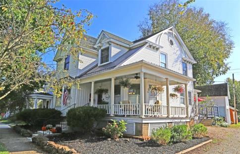 Beautiful 2 Story home located near downtown Mount Vernon, this charming home features 3 bedrooms and 2.5 baths, lot so hardwood flooring, formal living room with decorative fireplace and pocket doors, adjoining dining room with open staircase, first floor den/home office, lovely white cabinet filled kitchen with soapstone countertops and includes the major appliances, convenient main level laundry, primary bedroom suite with second decorative fireplace and adjoining bath, relaxing covered front porch and great rear deck, detached garage plus on street parking available, natural gas heat and central air, priced to sell at $250,000.