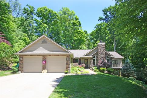 Gorgeous custom ranch home situated on two beautifully landscaped lots, features include 3 bedrooms and 2.5 baths, open great room floor plan with hardwood floors, floor to ceiling stone fireplace, large living and dining area, stunning cabinet filled kitchen with major appliances and granite countertops, amazing 26 x 12 four season sun room with tons of natural light, exceptional first floor owners suite with huge walk in closet and private on suite bath, French doors open in to the home office/den, convenient main level laundry room, finished walkout lower level with family room, second fireplace, full bath, second and third bedrooms, relaxing rear deck and patio space, attached 2 car garage with concrete driveway, geothermal heating and cooling, exquisite property that is a must see at $325,000. *Square footage includes finished walkout lower level.