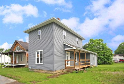 Ultra affordable home situated on a level and easy to care for lot, features include 2 nice sized bedrooms and a full main level bath, nice sized living room, adjoining formal dining room with open staircase, eat in kitchen with pantry cabinets and main level laundry hook up, easy care laminate floor on the first floor, beautiful natural wood work, natural gas heating, vinyl sided exterior, enclosed back porch, covered front porch, yard barn for added storage, immediate possession available, priced to sell at $75,000.