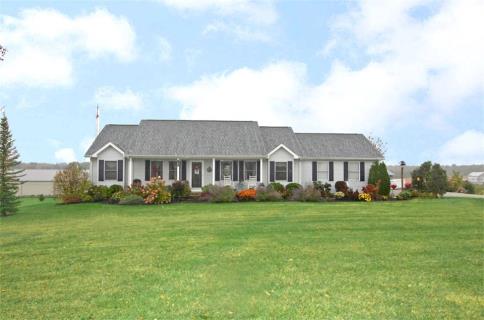 Gorgeous country ranch situated on 3.315 acres, features include 4 bedrooms and 2 full baths, open floor plan with a vaulted ceiling living room, adjoining cabinet filled kitchen with breakfast bar and includes the major appliances, spacious dining room, master bedroom suite with deluxe master bath, finished walkout lower level with family room, bonus room and 4th bedroom, relaxing rear deck, attached 2 car garage plus a detached 24 x 30 pole barn, beautifully landscaped yard, this property is truly impressive and a must see at $210,000.