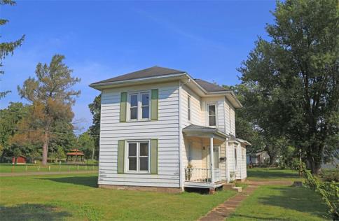 2 Story home situated on a level and easy to care for corner lot, located next to Riverside Park, features include 3 bedrooms and a full main level bath with laundry hook up, large natural light filled living room, adjoining dining room with built in bookcase/cabinet, eat in kitchen with ample cabinet space, relaxing patio space, detached 2 car garage, quick possession available, priced to move quick at $60,000!