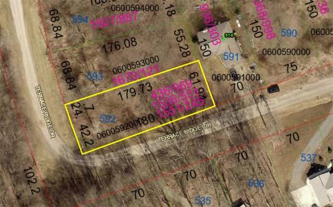 Corner lot located in Grand Valley View Subdivision, situated on the corner of Terrace Ridge Drive and Terrace Ridge Circle, lot measures .2587 of an acre, located in Brown Township and in Mount Vernon Schools, priced to sell fast at $8,500.