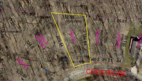 Oversized pie shaped lot located on Crestrose Circle in Northridge Heights Subdivision, lot measures .45 of an acre, located in Brown Township and in Mount Vernon Schools, priced to sell at $15,000.