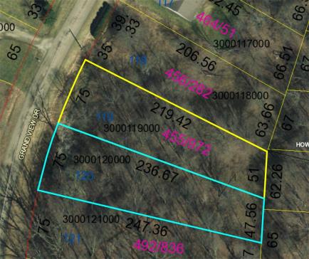Side by side lots located on Grand View Drive in Apple Valley, .6588 of an acre, Howard township and in East Knox Schools, lot 120 is considered non-buildable according to Apple Valley, county water and sewer available for hook up, package priced together for only $5,000.
