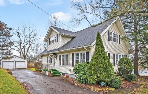 Charm and character filled home, spacious floor plan including 3 bedrooms and 2.5 baths, hardwood flooring throughout the home, nice sized living room and adjoining formal dining room, den/home office space, gorgeous cabinet filled kitchen, first floor master bedroom, upstairs features 2 bedrooms, a full bath and family room/bonus space, detached 2 car garage with paved driveway, natural gas forced air heating and central air, vinyl sided exterior, 3-dimension shingled roof, beautifully decorated and priced to sell at $115,000.